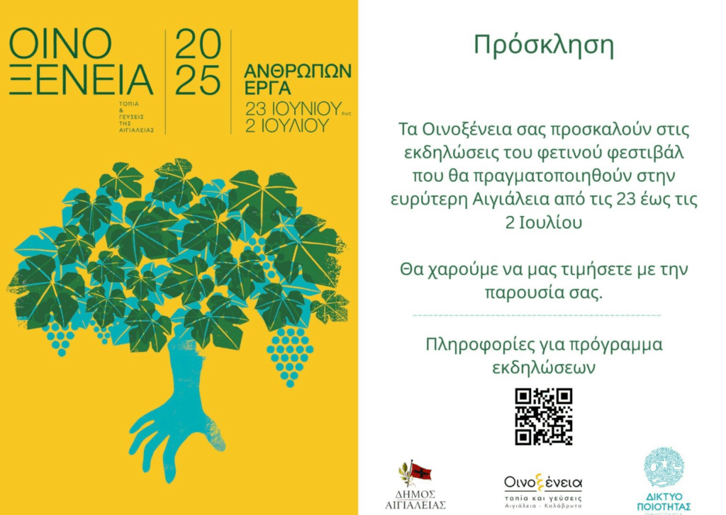 Για 12η συνεχόμενη χρονιά, το Φεστιβάλ “Οινοξένεια”, ένας αγαπημένος και εδραιωμένος θεσμός για την περιοχή της Αιγιάλειας και της ευρύτερης περιοχής έως τα Καλάβρυτα, γιορτάζει φέτος και από τις 23 Ιουνίου έως τις 2 Ιουλίου υπόσχεται να μας δώσει πολλούς και καλούς λόγους να επισκεφθούμε την περιοχή.